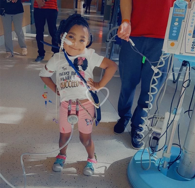 After the surgery, A’Riah received a Ventricular Assist Device (VAD) which is used to support heart function and blood flow for people with weak or failing hearts. “She named the VAD Charlie,” Tkeyah says.